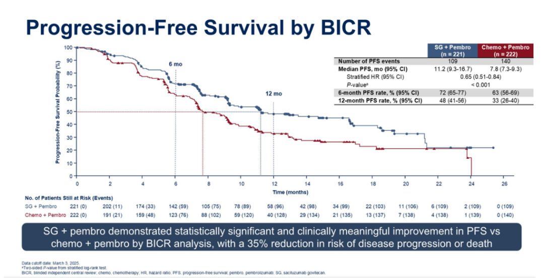 ASCO 2025丨ASCENT-04研究结果公布,SG/Pembro一线治疗显著改善PD-L1阳性TNBC患者的PFS