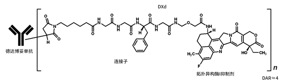 Dato-DXd作为新型的Trop-2 ADC,采用了第一三共专有的DXd ADC平台设计,在分子结构及作用机制层面进行了优化。其靶向Trop-2部分为人源化抗Trop-2 IgG1单克隆抗体MAAP-9001a,作为ADC药物的骨架,每个抗体的连接药物的平均药物抗体比(DAR)为4,相比较高DAR可最大化治疗窗并限制药物毒性。其细胞毒载荷为拓扑异构酶I抑制剂DXd,抗肿瘤活性约为SN38的10倍,与乳腺癌常见药物的作用机制并不重叠,抗肿瘤活性强且无交叉耐药反应。其连接子为可裂解GGFG四肽连接子,在血液中可以维持高度稳定性,进入肿瘤细胞后被特异性酶选择性剪切,尽可能地降低了载药的提前释放,保证了安全性。裂解后释放的DXd具有较高的细胞膜渗透性,可通过旁观者效应,进一步提升抗肿瘤效果。Dato-DXd优化的分子结构及作用机制构筑了疗效与安全性双优基石,改进了药代动力学特征,成为了当前唯一21天给药1次的Trop-2 ADC,临床应用更加便捷,更令人期待。
