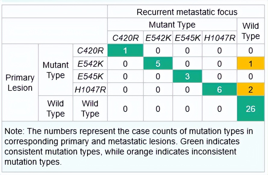 表2.PIK3CA突变在原发灶与转移灶间的一致性分析