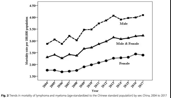 [2] Liu W, Liu J, Song Y et al, Mortality of lymphoma and myeloma in China, 2004-2017: an observational study. J Hematol Oncol. 2019,12(1):22.