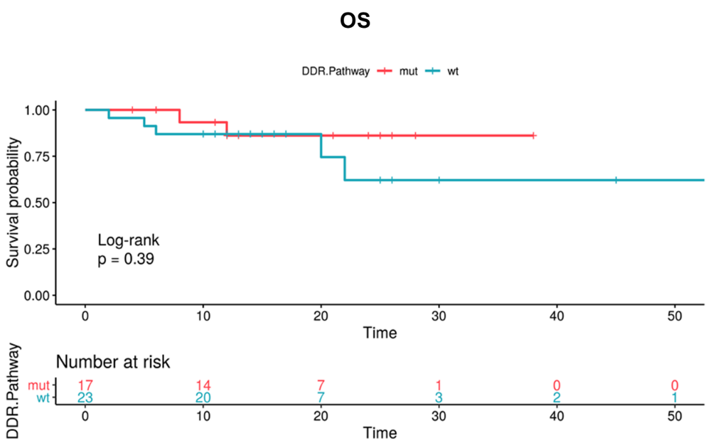 在调整国际转移性肾细胞癌数据库联盟风险(IMDC)和既往治疗程度后,DDR突变的风险比(HR)为2.68((95%CI:0.96~7.46;P=0.059)。在该队列中,DDR突变患者相比野生型和预后具有显著的相关性,DDR通路基因突变可能改变TKI靶向药物的治疗结局,该结论有待大样本量进一步研究证实。