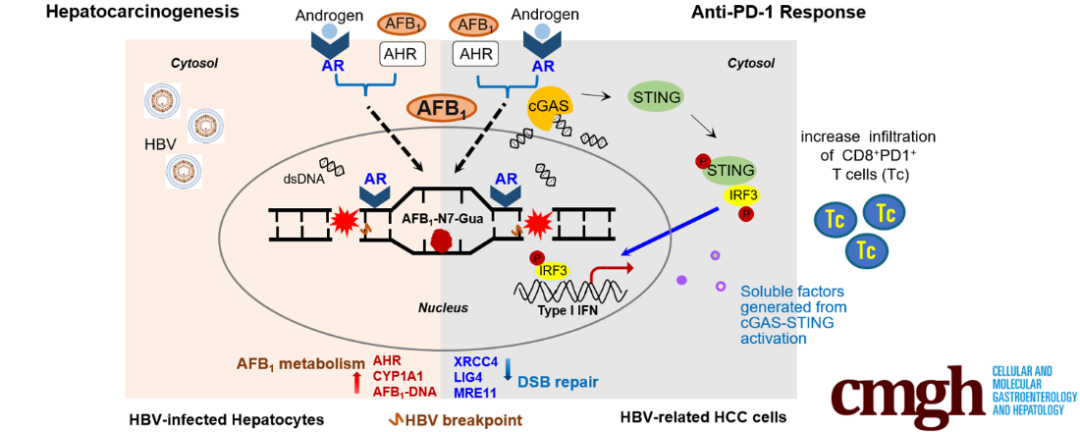 研究者发现,雄激素信号通路促进基因毒性物质黄曲霉毒素(aflatoxin B1,AFB1)代谢相关基因的高表达,抑制非同源末端连接(Non-homologous end joining,NHEJ)相关基因对双链断裂DNA损伤的修复,推测AR信号可能促进了慢性HBV感染的男性更容易发展为AFB1相关性HCC。