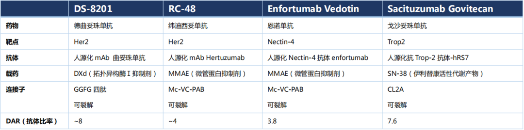 Enhertu是一款靶向HER2的抗体偶联药物(ADC),由人源化IgG1单抗、DNA拓扑异构酶I抑制剂和酶促裂解四肽连接子(GGFG)组成,采用半胱氨酸残基的定点偶联。已在国外获批多种适应症。目前在中国获批的适应症为,单药适用于治疗既往接受过一种或一种以上抗HER2药物治疗的不可切除或转移性HER2阳性成人乳腺癌患者。