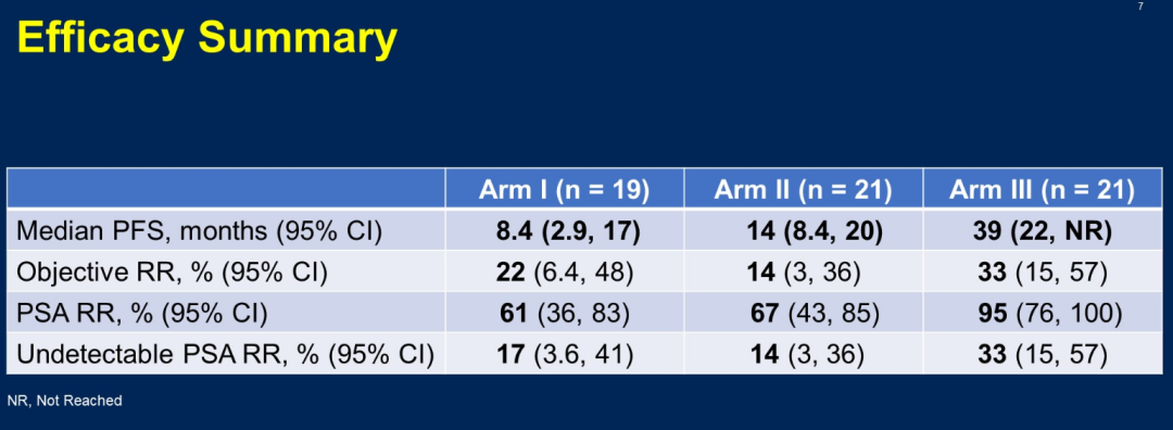 本次ASCO-GU大会前列腺癌口头报告专场中报道的BRCAAway研究,则是一项探讨不同PARPi或NHA一线治疗模式的多队列II期研究,入组患者均为初治的mCRPC(在mHSPC阶段则没有接受过抗雄治疗),随机分成4个队列,队列1-3是针对BRCA1/2和/或ATM突变的患者:队列1患者使用阿比特龙,进展后允许交叉使用奥拉帕利;队列2使用奥拉帕利,进展后允许使用阿比特龙;队列3使用奥拉帕利+阿比特龙;队列4是针对其他非经典的DNA修复缺陷基因患者,使用奥拉帕利+阿比特龙。本次ASCO-GU大会报道队列1-3的结果显示,中位PFS分别为8.4个月、14个月和39个月,PSA缓解率分别为58%、67%和95%。