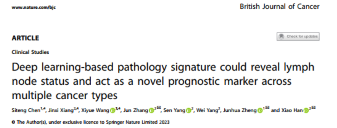 基于深度学习的病理特征可作为恶性肿瘤的淋巴结转移及新型预后标志物